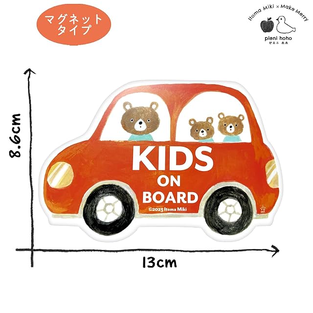 商品名:pienihoho いとまみきオリジナルイラスト カーマグネット KIDS ON BOARD 13×8.6cm セーフティサイン 乗車中プレート 動物家族車型イラストシリーズ (マグネット, くまの家族 KIDS)