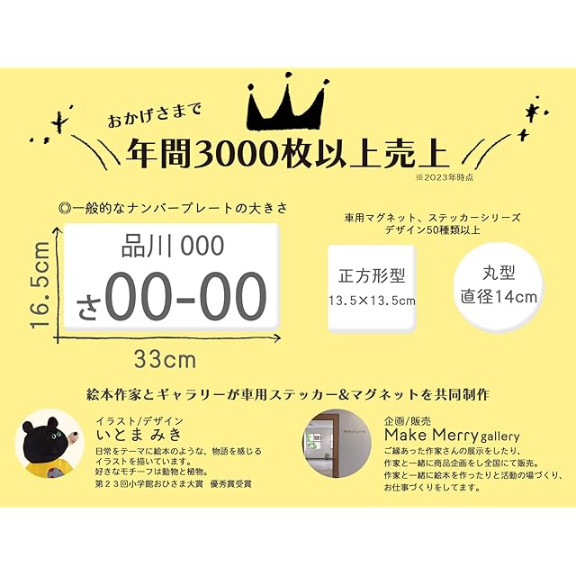 pienihoho いとまみきオリジナルイラスト カーマグネット KIDS ON BOARD 13×8.6cm セーフティサイン 乗車中プレート 動物家族車型イラストシリーズ (マグネット, くまの家族 KIDS)