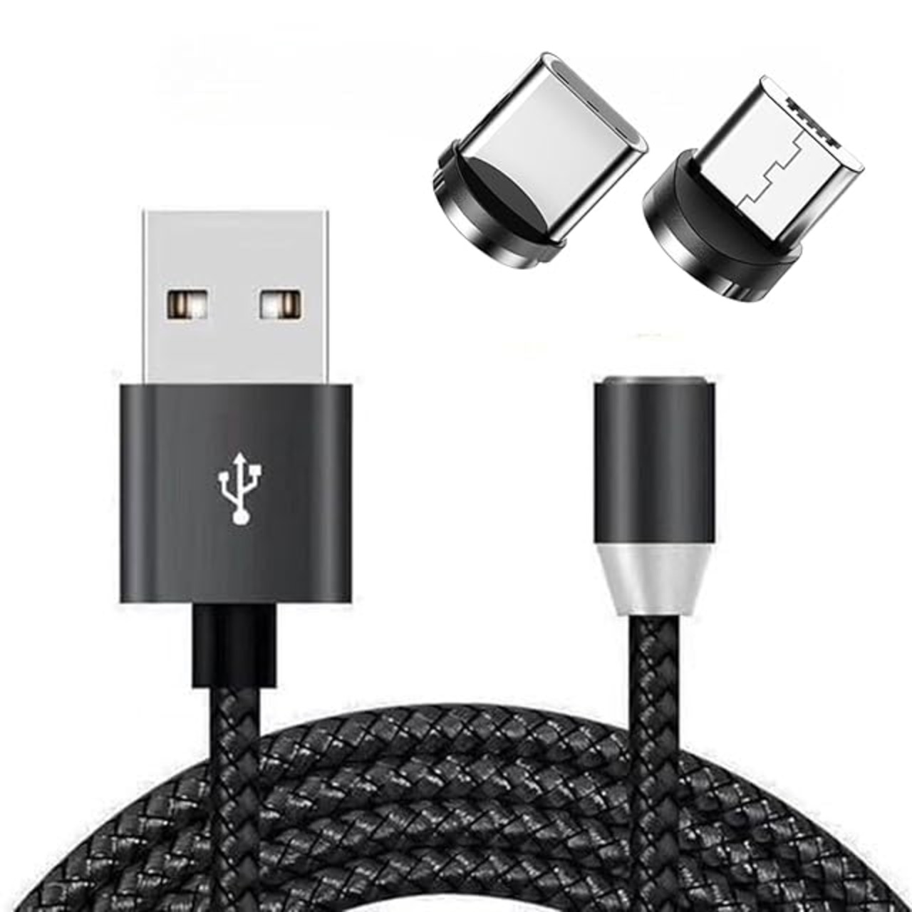 AQUALOACH マグネット式 充電ケーブル Type-C/Micro USB 急速充電対応 高耐久ナイロン編み 2端子セット【1m】 (ブラック)