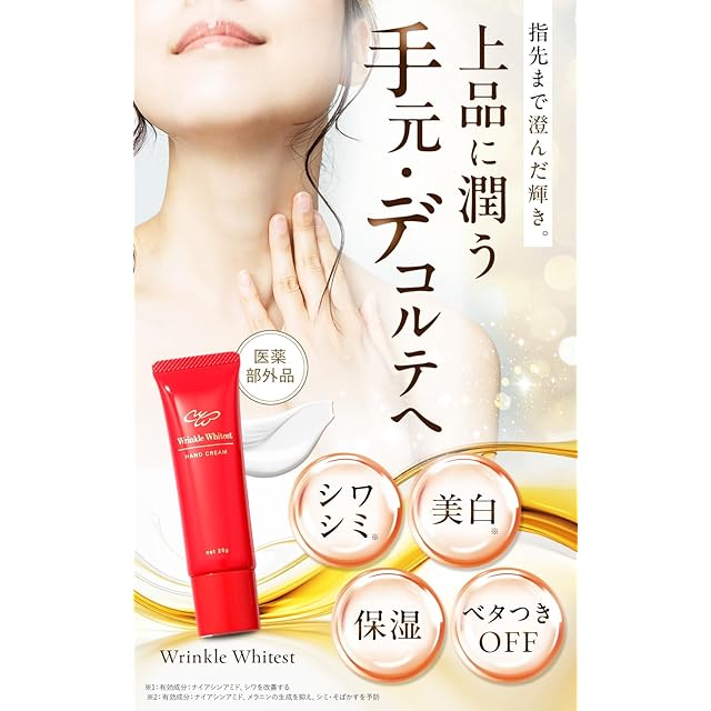 【べたつかない使用感】リンクルホワイテスト は老け手の印象「シミ」「シワ」にダブルアプローチする ハンドクリーム です。 適量をとり、お肌に塗布してください。(適量目安:パール1つ分(約0.4g)、1日2回のご使用で約1か月分) ギフトボックス付きは 母の日のプレゼント で人気があります。 敬老の日 にいかがでしょうか。女性 誕生日プレゼント としても 人気がありますのでおすすめします!母の日ギフト ハンドクリーム