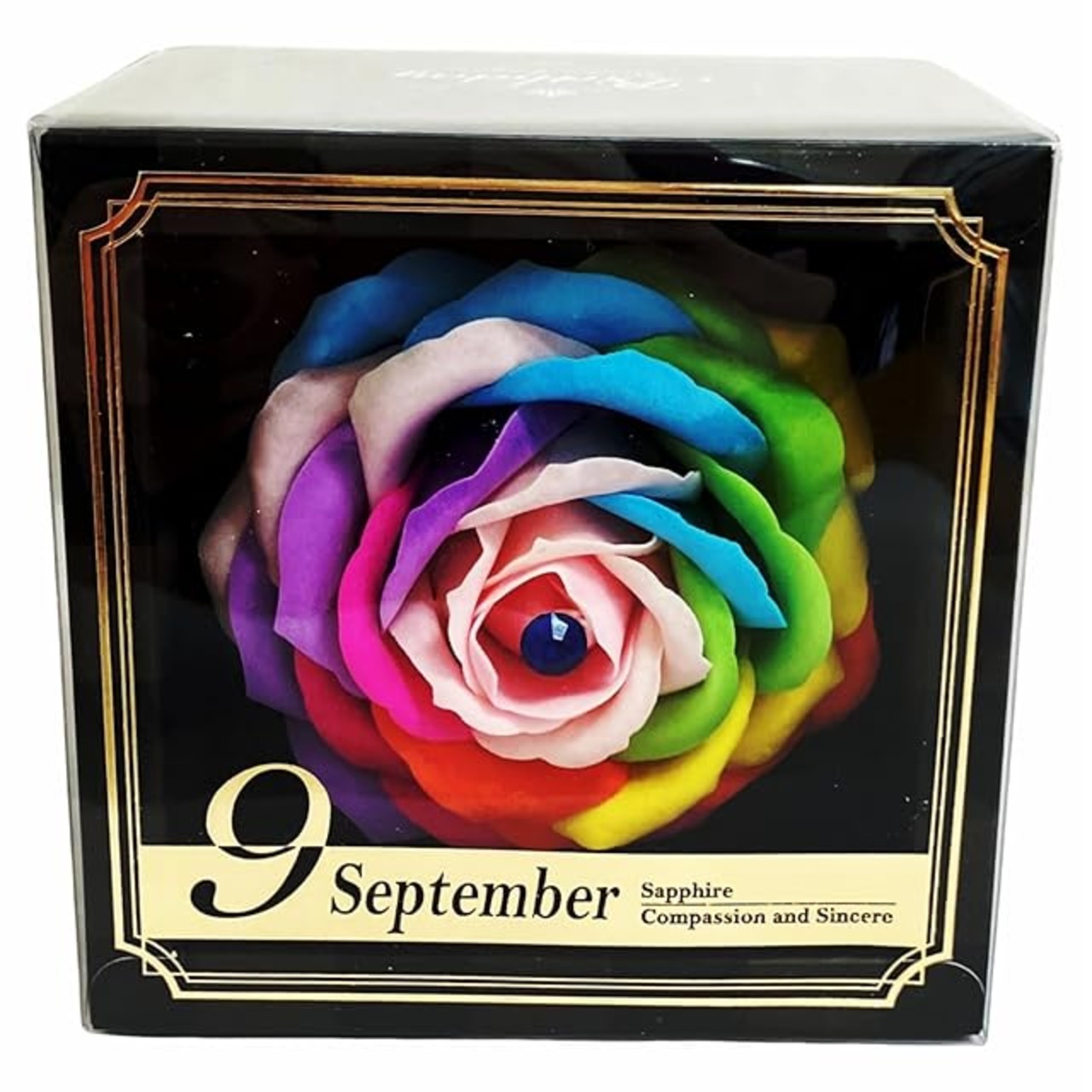 キューフラ(Q-FLA) ソープフラワー 1輪 バースデーレインボー 9月 誕生石 サファイア レインボー 一輪 ボックス ギフト 774089