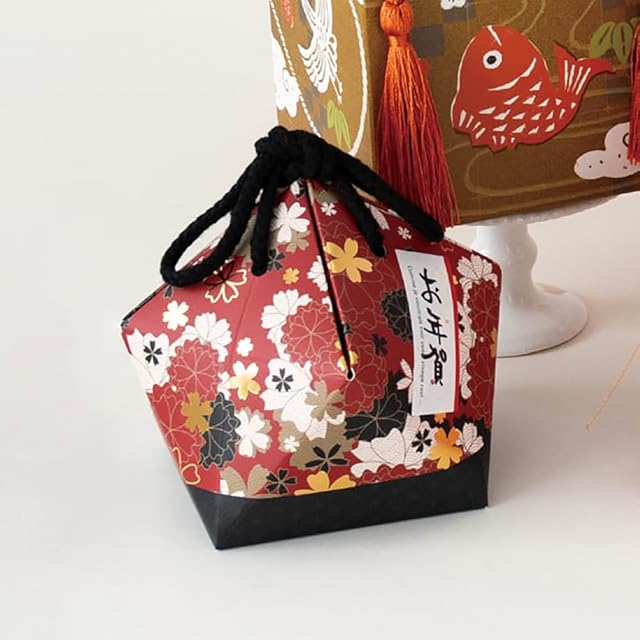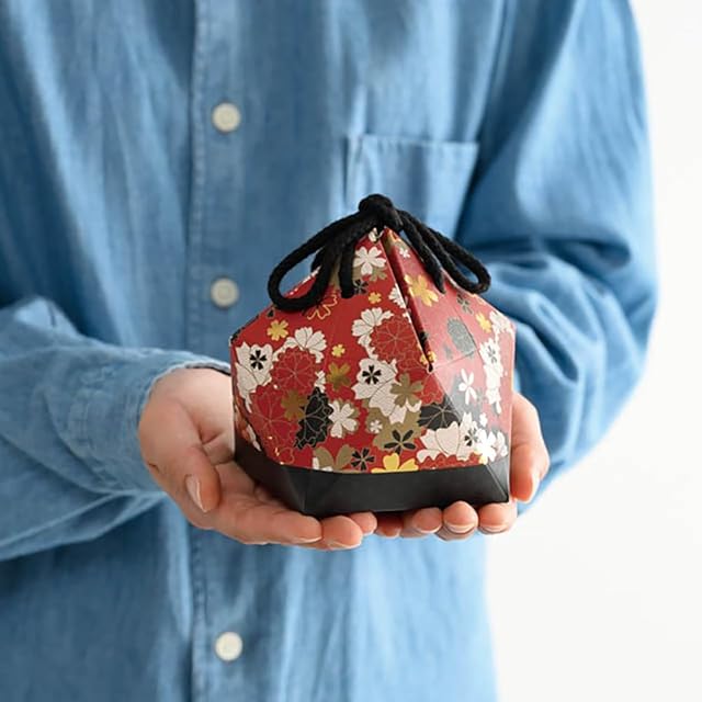 商品名:ヘッズ ギフトボックス 12.5(9)×12.5(9)×11cm S 10枚 黒 和風 巾着型 着物柄 HEADS WA-GBKS