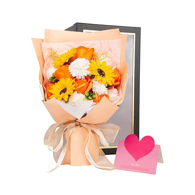 ソープフラワー 花束 母の日ギフト 誕生日や退職祝いに最適 ギフトボックスとメッセージカード付き 開店 卒業 記念日 プレゼント (Yellow ひまわり)