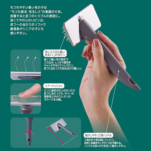 あの子の表情は、あなたがつくりだす。もつれて毛玉になりやすい長い毛を取り除き、サラサラにできる握りやすいソフトスリッカーブラシ。
