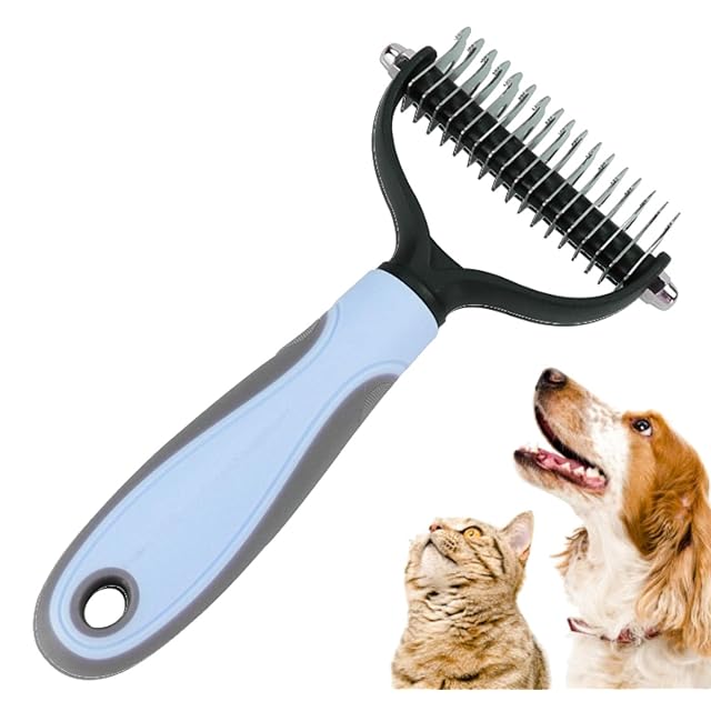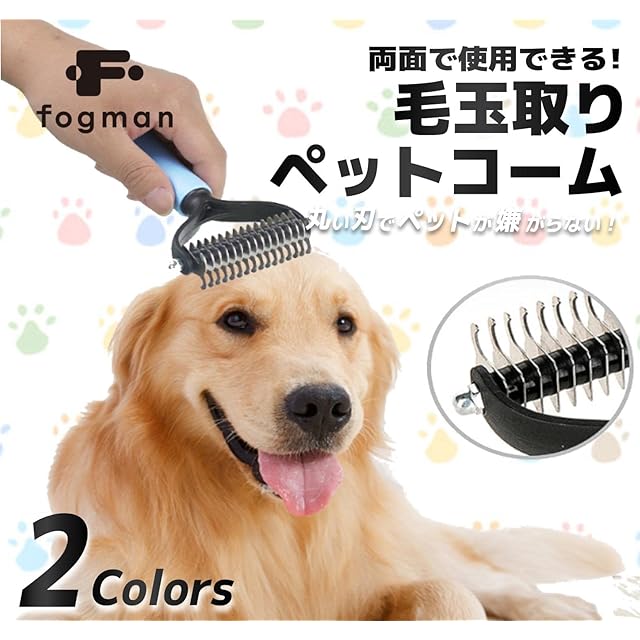 fogman 毛玉取り ペットコーム ムダ毛取り ペットブラシ 抜け毛 犬 猫 痛くない 短毛 長毛 (ブルー)