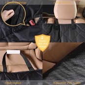 【耐爪・防水の高密度生地】 表面に菱目キルト加工を施した高密度ナイロン素材(黒)。ペットの爪や水漏れに強く、シートを守りながら車内の清潔を長期間維持。