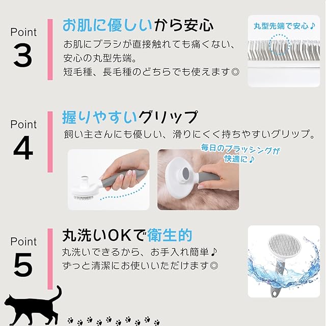 【ワンプッシュで簡単クリーニング】ワンプッシュで簡単に抜け毛を除去できます。面倒なブラシのお手入れが簡単に! 水洗い可能で清潔にお使いいただけます。洗った後はよく乾燥させ保管してください。