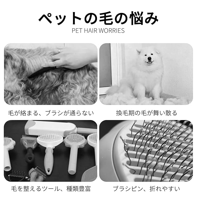 【適用対象と場合】中毛~長毛犬、中毛~長毛猫など、犬猫通用のペット用ブラシです。お散歩やお出かけ前後の毛並みケア、換毛期の抜け毛対策、シャンプー前後の毛玉ほぐし、さらにはソファや車内の毛の付着防止まで、日常のあらゆる場面で活躍します。ペットの毛並みを整えながら、清潔な環境をキープできる便利なブラシです