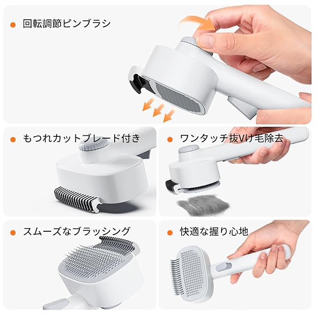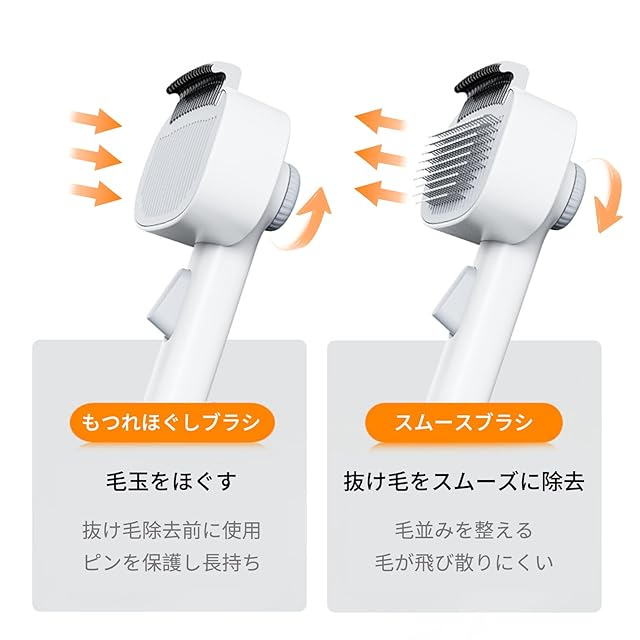商品名:ZeniMart 猫ブラシ ペット用ブラシ 2in1 猫 ブラシ 犬 ブラシ スリッカーブラシ 猫くし 犬くし 抜け毛取り ボタンで簡単除去 もつれた毛取り 調節可能 多機能 抜け毛・もつれ取りブラシ 簡単なお手入れ 犬猫通用 短毛 中毛 長毛 種用