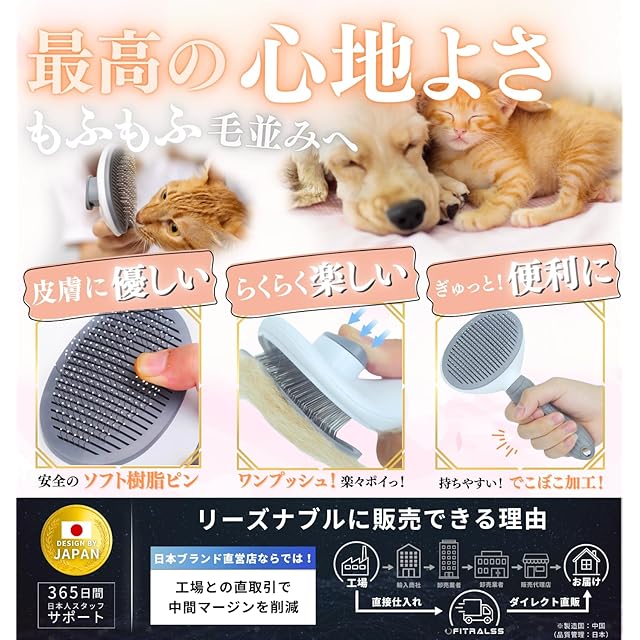 【絆を深めるグルーミング】中長毛の愛犬・愛猫のためのプレミアムケアブラシ。定期的なブラッシングで美しい毛並みをキープしながら、スキンシップも深まります。大切な家族との幸せなふれあいの時間を、心ゆくまでお楽しみください。