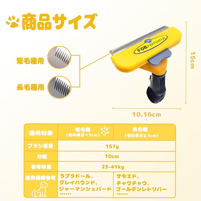 【抜群な抜け毛取り効果】ブラシの歯が高密度にデザインされ、ペットを痛がらず簡単に抜け毛を取り除きます。エッジガードの設計で肌を傷つけることなく、安心してお使いいただけます。