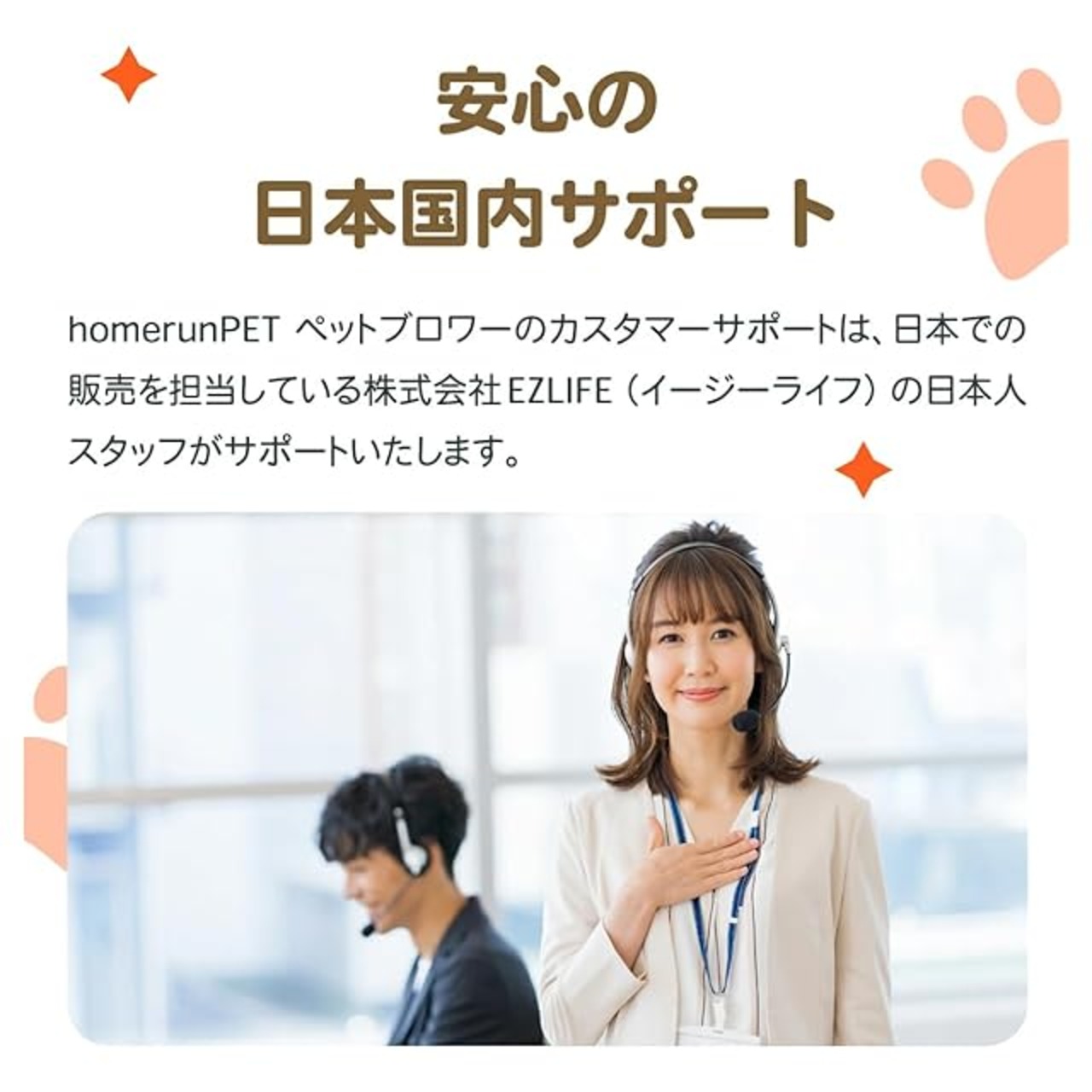 【過熱 保護/安心サポート】安全機能で万一に備え、使い方ガイドとサポートで導入も安心。ペット ドライヤー ブロワとして換毛期の強い味方になります。
