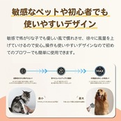 ペットのドライヤー時間、もっと短く、もっと快適にしませんか?<br /><br /> 愛犬・愛猫のお手入れで大変なシャンプー後のドライヤー。この超速乾高機能ドライヤーがあれば、そのお悩みを解決し、ペットと飼い主様双方の負担を劇的に減らすことができます。<br /><br /> 【メリット1】驚きの速乾力で、ドライヤー時間を大幅に短縮!<br /> もう長時間ドライヤーを頑張る必要はありません。120m/sの超高風速で、従来のドライヤーよりも圧倒的に早く乾かせます。独自のリングエアノズルは、最大で従来品の6倍もの風速を実現し、毛の根元まで強力な風が届きます。これにより、乾かす時間がぐっと短くなり、飼い主様の労力とペットのストレスを軽減します。<br /><br /> 【メリット2】ペットに優しい静音・低刺激設計<br /> 怖がりの子でも安心です。図書館並みのわずか43dBという静かな動作音なので、大きな音が苦手なワンちゃんやネコちゃんもリラックスできます。<br /> 火傷の心配なく、安心して使えます。内蔵チップが常に温度を60℃以下に保ち、熱くなりすぎるのを防ぎます。また、持ち手もダブルカバーで熱くならないため、飼い主様も安全です。<br /> その子にぴったりの風を見つけられます。温度は3段階、風量は99段階で細かく調整可能。ペットが嫌がらない優しい風から始められるので、ドライヤーが苦手な子も少しずつ慣れさせることができます。<br /><br /> 【メリット3】自宅でプロ並みの美しい仕上がりに<br /> サロン帰りのような、しっとりサラサラな毛並みを実現します。2000万個/㎤ものマイナスイオンが放出され、被毛を美しく整えます。<br /> 大型犬や長毛種のお手入れも楽々です。広範囲を均一に乾かせるリングエアノズルや、業界初の10cm幅広ノズルを使えば、大きな体のワンちゃんもスピーディーに乾かせます。カーブエアノズルは長い毛並みを整えるのに最適です。<br /><br /> 【メリット4】お財布にも優しい省エネ設計<br /> 家計の負担を気にせず、毎日使えます。高性能な純銅製モーターにより、耐久性が高いだけでなく、エネルギー効率も向上。大型犬1匹を乾かすのにかかる電気代は、わずか約25円です。<br /><br /> 【メリット5】使いやすさを追求したデザイン<br /> 長時間使っても手が疲れません。ノズルが20°下向きに設計されているため、自然な角度で楽に持つことができます。<br /><br /> お部屋の雰囲気を壊しません。シンプルでおしゃれなグレー&ホワイトのデザインは、どんなインテリアにも自然に馴染みます<br />