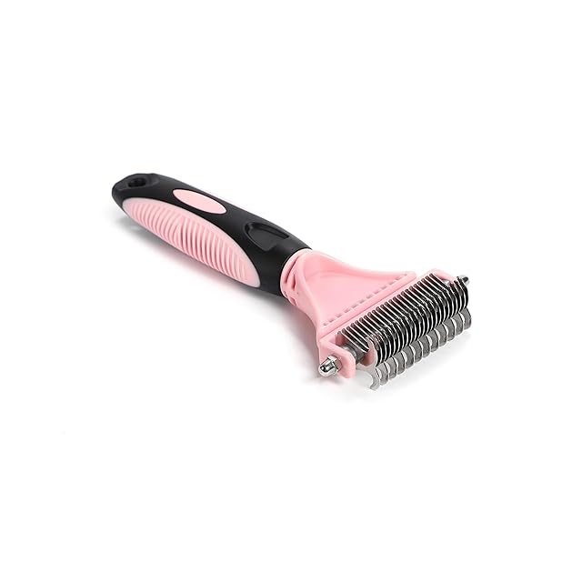 ペット毛玉取り ペットコーム 犬用 猫用 マット除去ブラシ猫のくし犬用 猫用 厚い髪結び除去 長毛短毛兼用 両面設計 グリーン (ピンク)