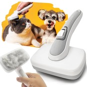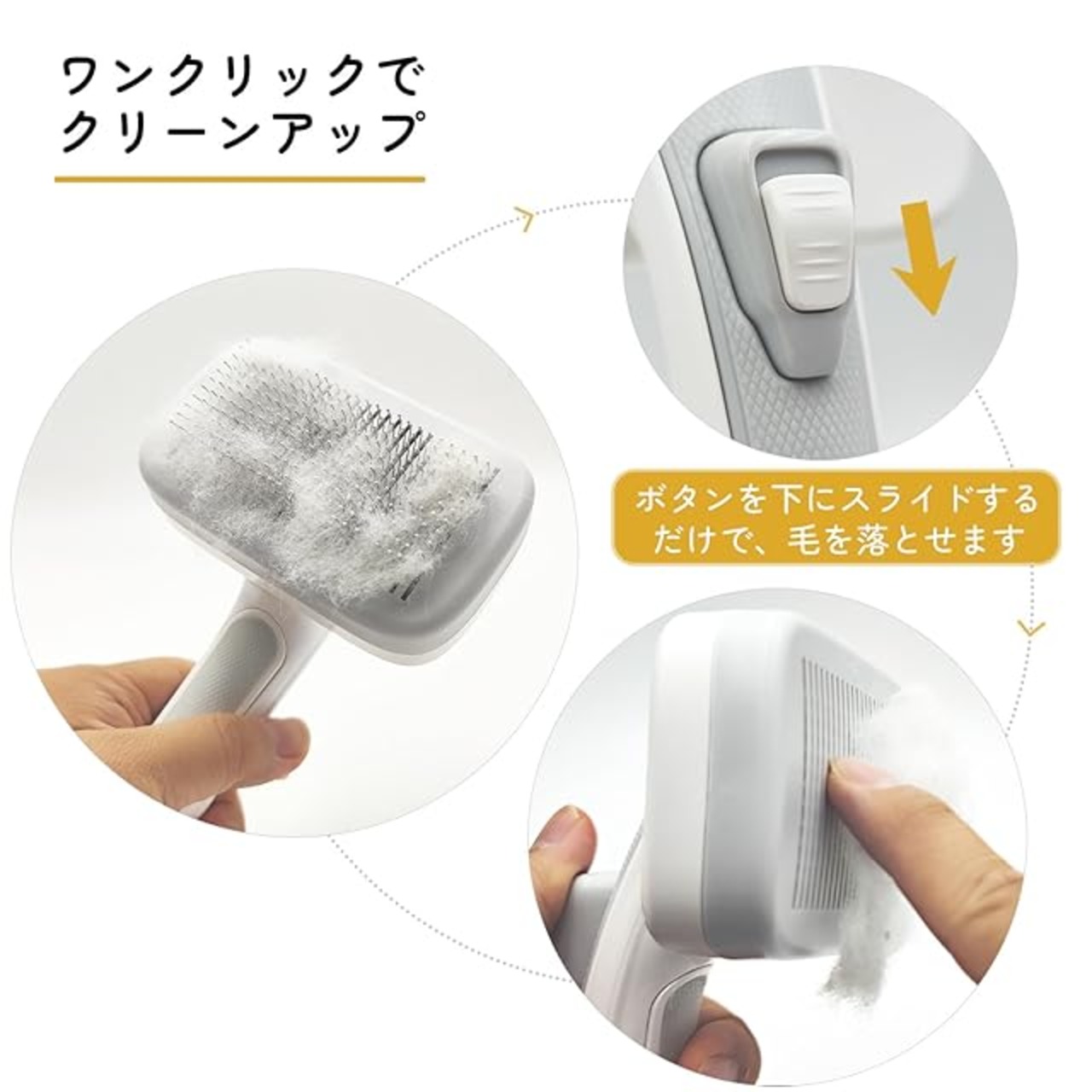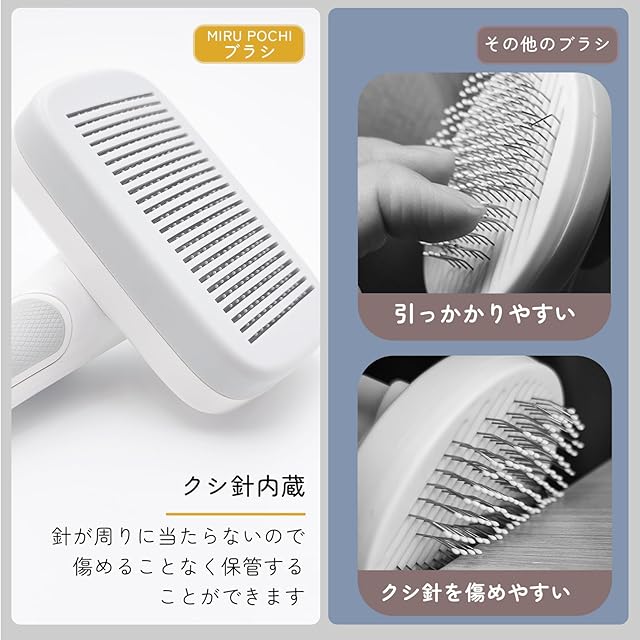 Miru pochi(ミルポッチ) 犬猫用ブラシ スリッカーブラシ ペット ブラシ ワンプッシュ式 コーム ピンブラシ 抜け毛除去簡単 皮膚に優しい マッサージ 長毛種 短毛 人気 軽量