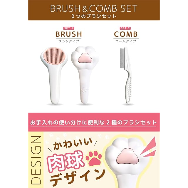 【かわいさ爆発!肉球型ブラシ】 猫の肉球をモチーフにしたキュートなデザイン。見た目も癒され、使うたびに飼い主も猫もハッピーに!