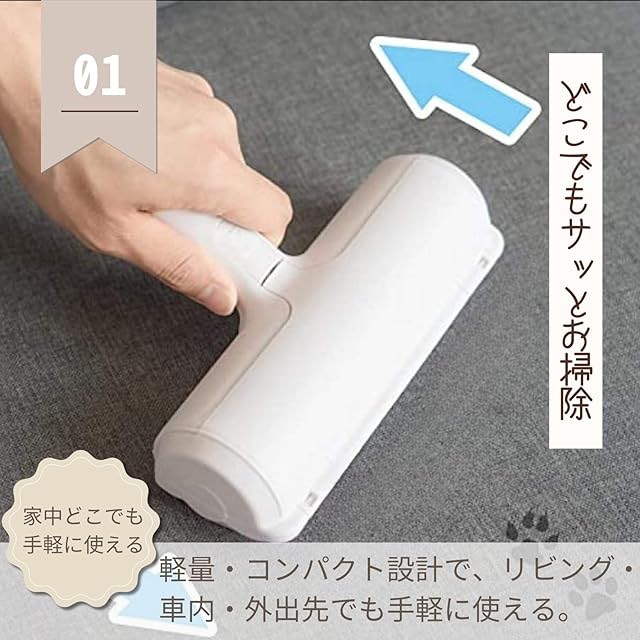 【軽量&コンパクト設計で、家中どこでも手軽に使える】軽量で女性や高齢者でも扱いやすく、手にフィットするサイズ。ソファ・カーペット・洋服などあらゆる抜け毛・ホコリ対策に最適。「ペット抜け毛 ローラー」「カーペットクリーナー」などのキーワードとも親和性が高い設計。