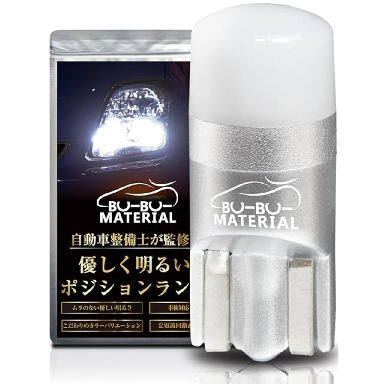 商品名:ぶーぶーマテリアル 【所ジョージの世田谷ベース掲載】 T10 LED ホワイト 7000K 車検対応 全7色 優しく明るい光拡散 ポジションランプ 12V 無極性 2個