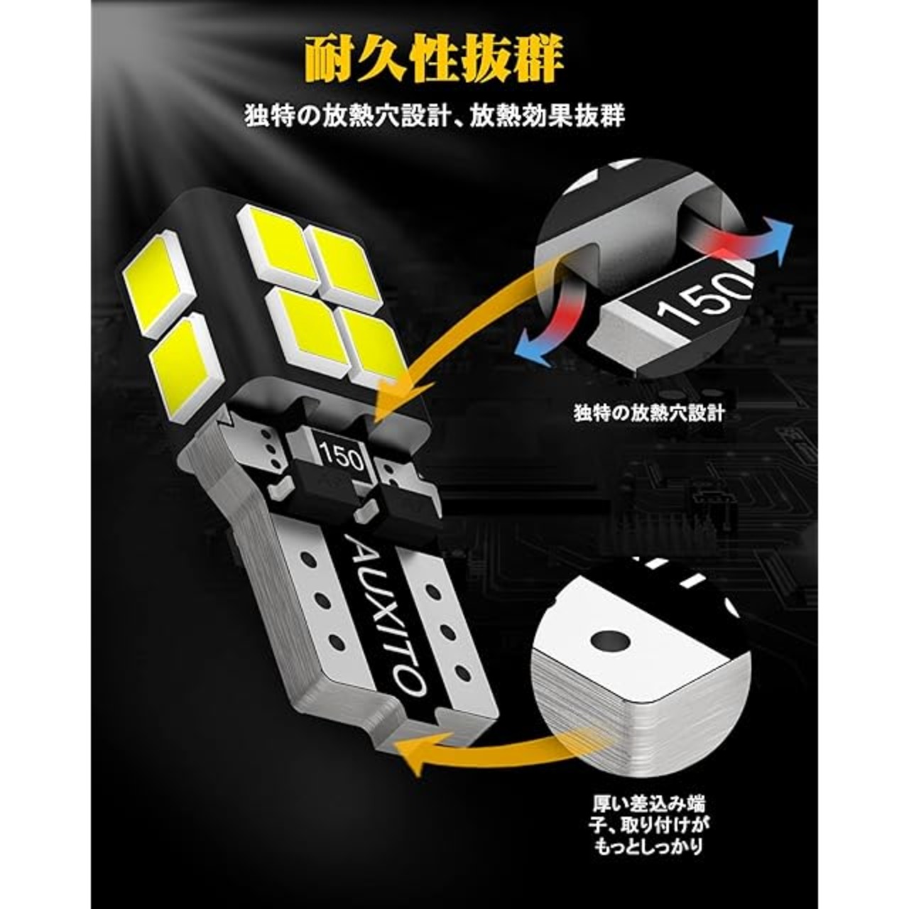 商品名:AUXITO T10 LED ホワイト 6000k爆光 10個 LED T10 車検対応 2835LEDチップ14連 12V 車用 ポジション/ライセンスランプ/ナンバー灯/ルームランプ