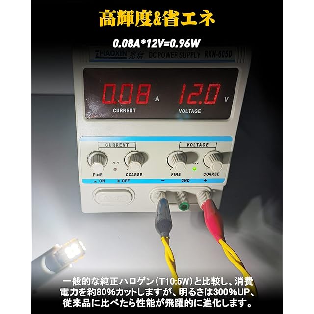 【超高輝度&省エネルギー】高輝度SMD2835チップを採用し200Lmの明るさ、360°全方位照射できる。市販品(T10)のハロゲンと比較して約80%の消費電力の省エネを実現でき、明るさは大幅にアップ!