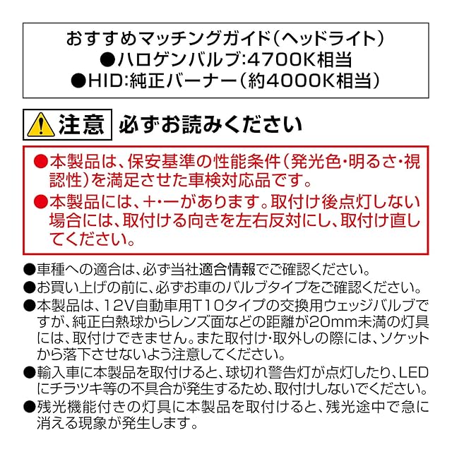 色温度:5000K/全光束:120ルーメン/消費電力:0.81W/仕様電圧:DC12V/車検対応