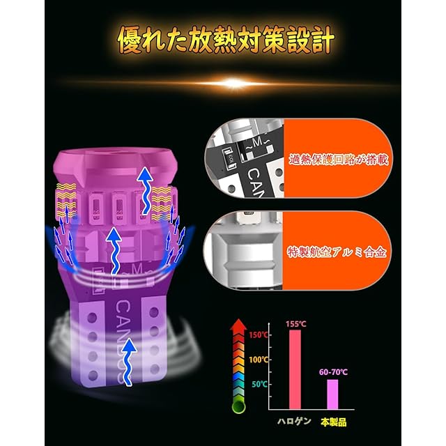 【導電性&耐久性抜群】導電面積が広く、市販品の導電鉄線より、ルーズや接触不良やすいの心配がなし。放熱効果が抜群な航空用アルミヒートシンク採用して、独特な放熱穴の設計、瞬間の熱伝導と短時間の排熱ができて、バルブの性能を確保でき、50000時間以上使え、寿命がハロゲンより100倍以上長くなります