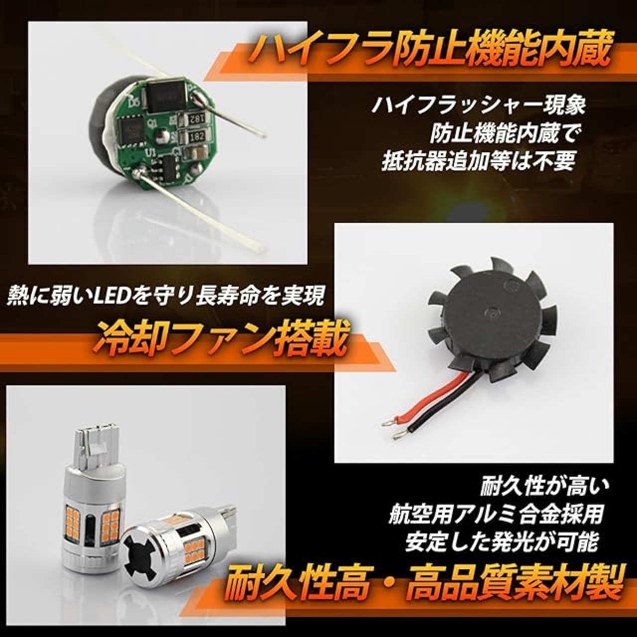 ✅放熱効果&耐久性抜群 航空用アルミ素材と内蔵式高速冷却ファンを搭載し、優れた放熱効果を実現。このLEDバルブは、LEDの高性能を実現し、 ウインカー 爆光 及び安定した発光を可能にします。バルブLEDチップと抵抗から発生する熱を効率的に逃し、長寿命 50000時間以上に延ばします。