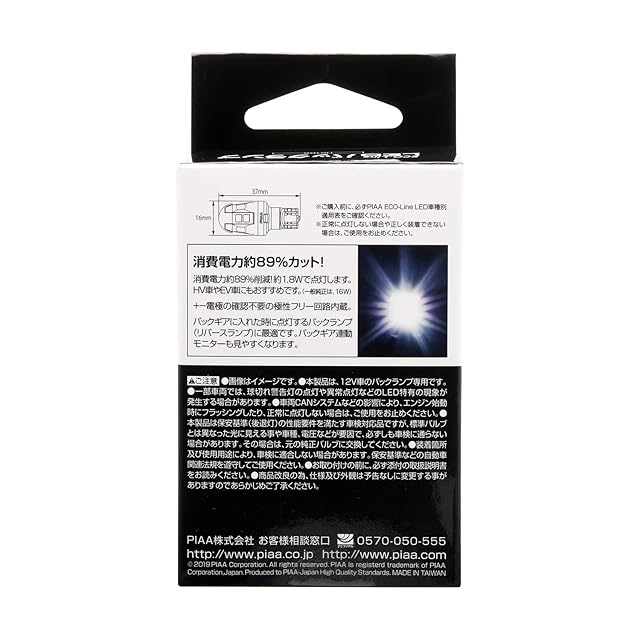 商品名:PIAA(ピア) 車用 バルブ バックランプ用 LEDバルブ T16 6500K 160lm ECO-Lineシリーズ_車検対応 1個入 12V/1.8W 極性フリー 全方向拡散8チップ HS106