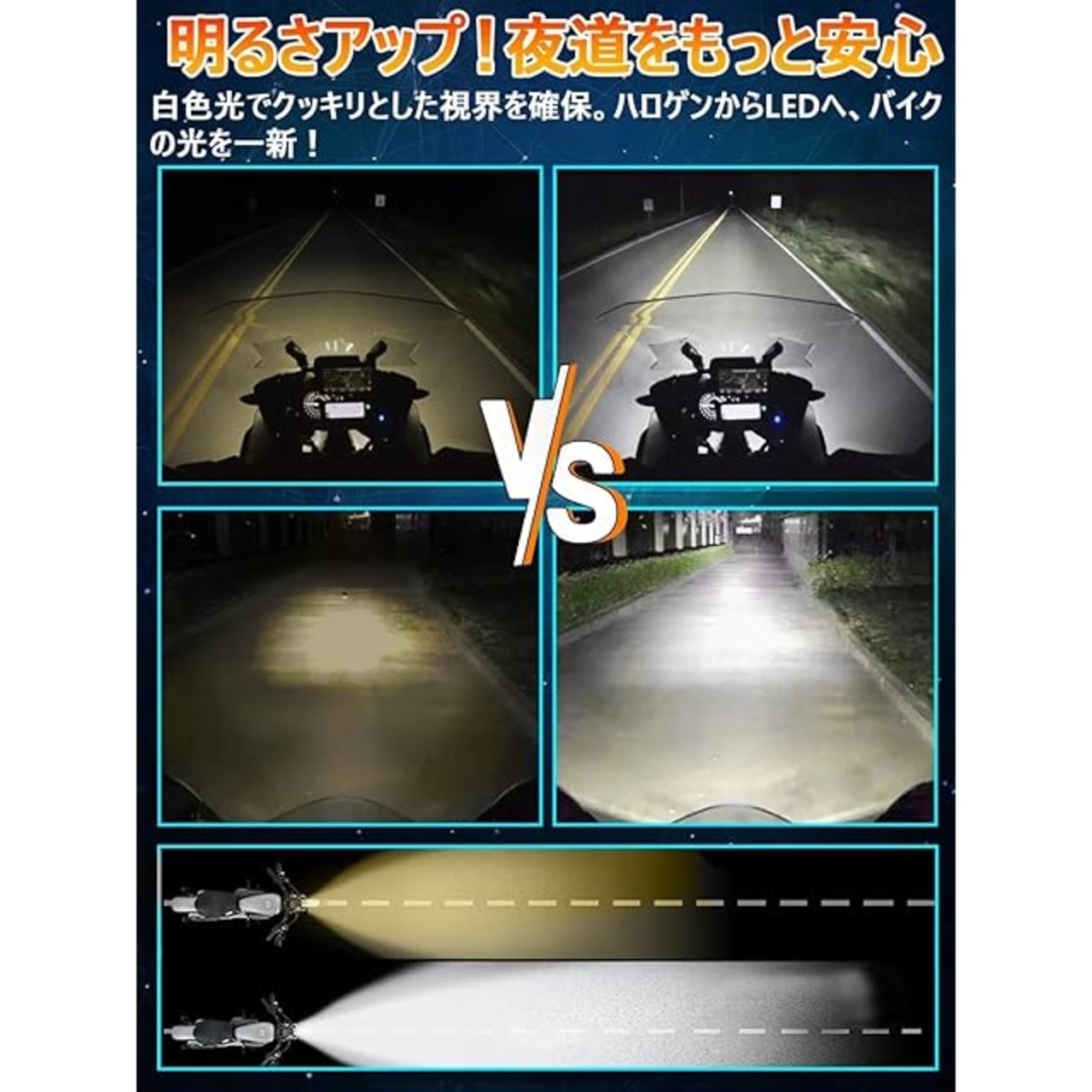 ✅【高輝度2連COBチップ搭載&圧倒的な明るさ】XELORD ba20d h4bs バイク ledヘッドライト高品质COBチップを2基搭載し、ハロゲンランプの数倍の明るさを実現。6500Kピュアホワイト光が路面を均一に照射し、標識や障害物を鮮明に認識可能。暗い峠道や街灯の少ない夜道でも安心感が大幅アップ、雨天・霧の日でも安心性を確保します。