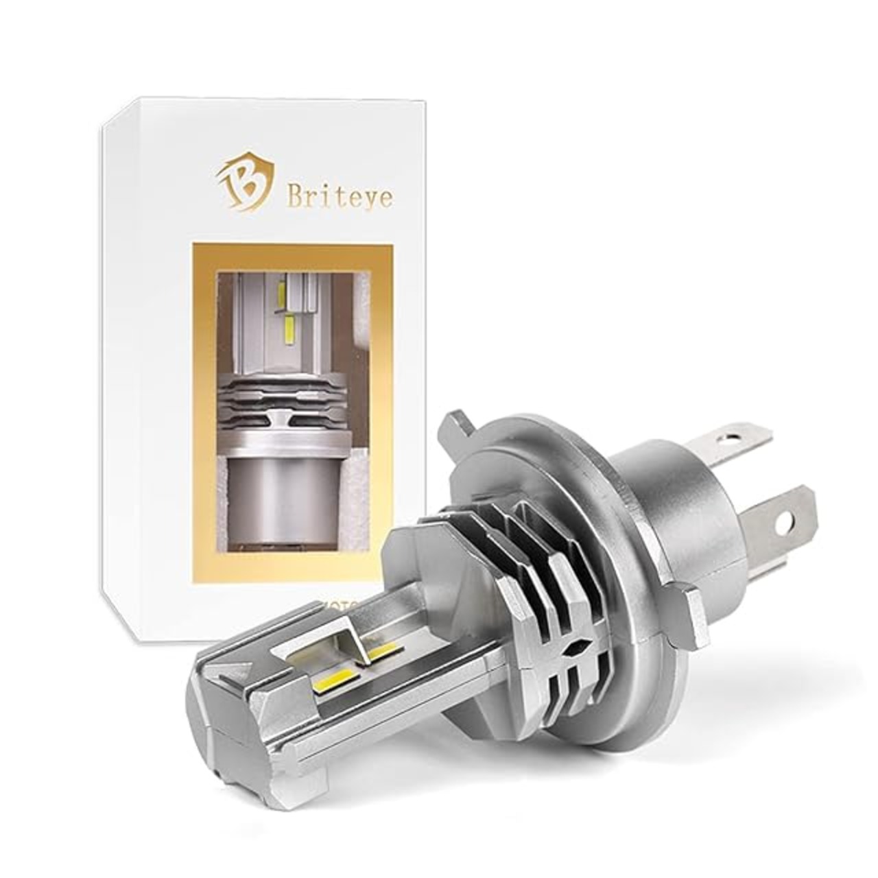 商品名:Briteye(まぶしい) H4 バイク LEDヘッドライト 車検対応 CREEチップ搭載 一体型 バイク用 H4 LEDバルブ HI/LO切替 6500K ホワイトファンレス DC12V 24V ledライト 1個入 (H4 (1個入))