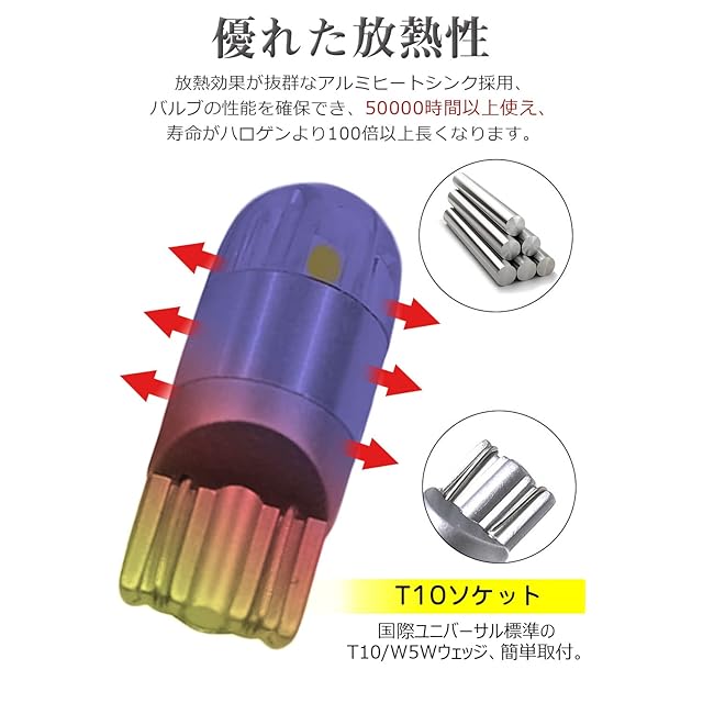 T10 led ポジションランプ ナンバー灯 2SMD 3020chip明るいLEDチップ 高輝度 6000K led t10 ホワイト 爆光 ルームランプ ledバルブ DC12V専用 車用 車検対応 ポジション テールランプ ライセンスランプ 168 2825 T10 W5W 無極性 取付簡単 50000時間以上 20個入り