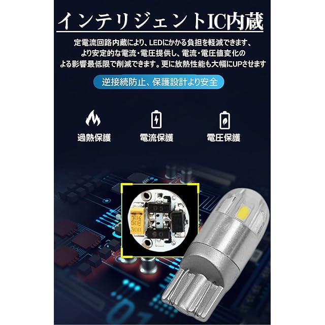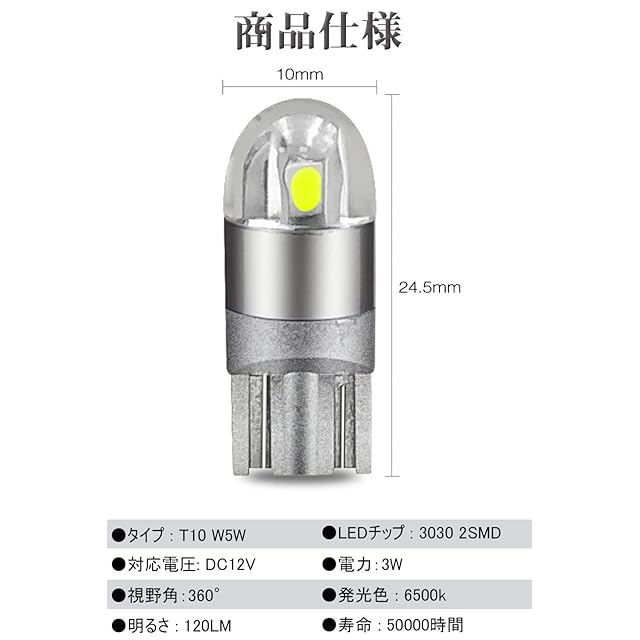 商品名:T10 led ポジションランプ ナンバー灯 2SMD 3020chip明るいLEDチップ 高輝度 6000K led t10 ホワイト 爆光 ルームランプ ledバルブ DC12V専用 車用 車検対応 ポジション テールランプ ライセンスランプ 168 2825 T10 W5W 無極性 取付簡単 50000時間以上 20個入り