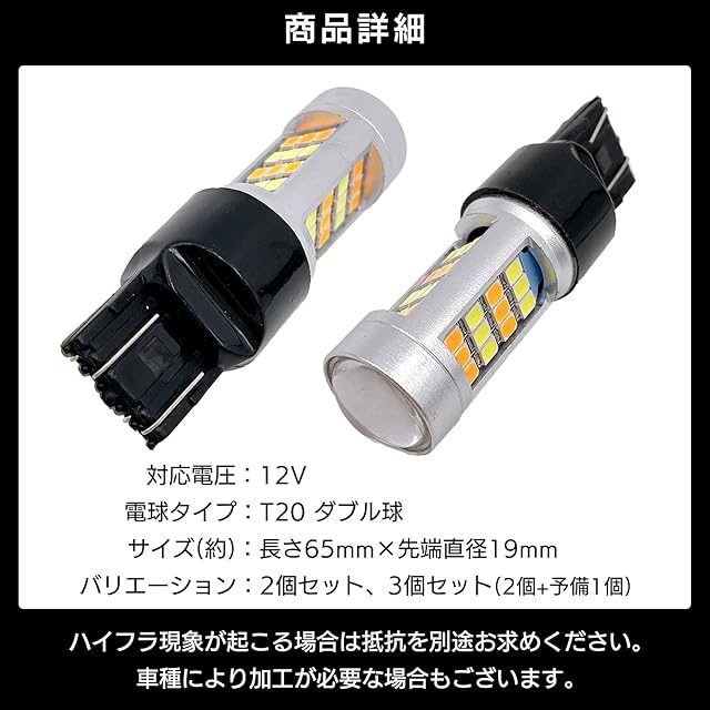 商品名:Meliore ウインカーポジション キット LED T20 ダブル 12V アンバー ホワイト キャンセラー 内蔵 スモール ウィンカー ランプ オレンジ 白 2色切替 高輝度 バルブ 予備 3個