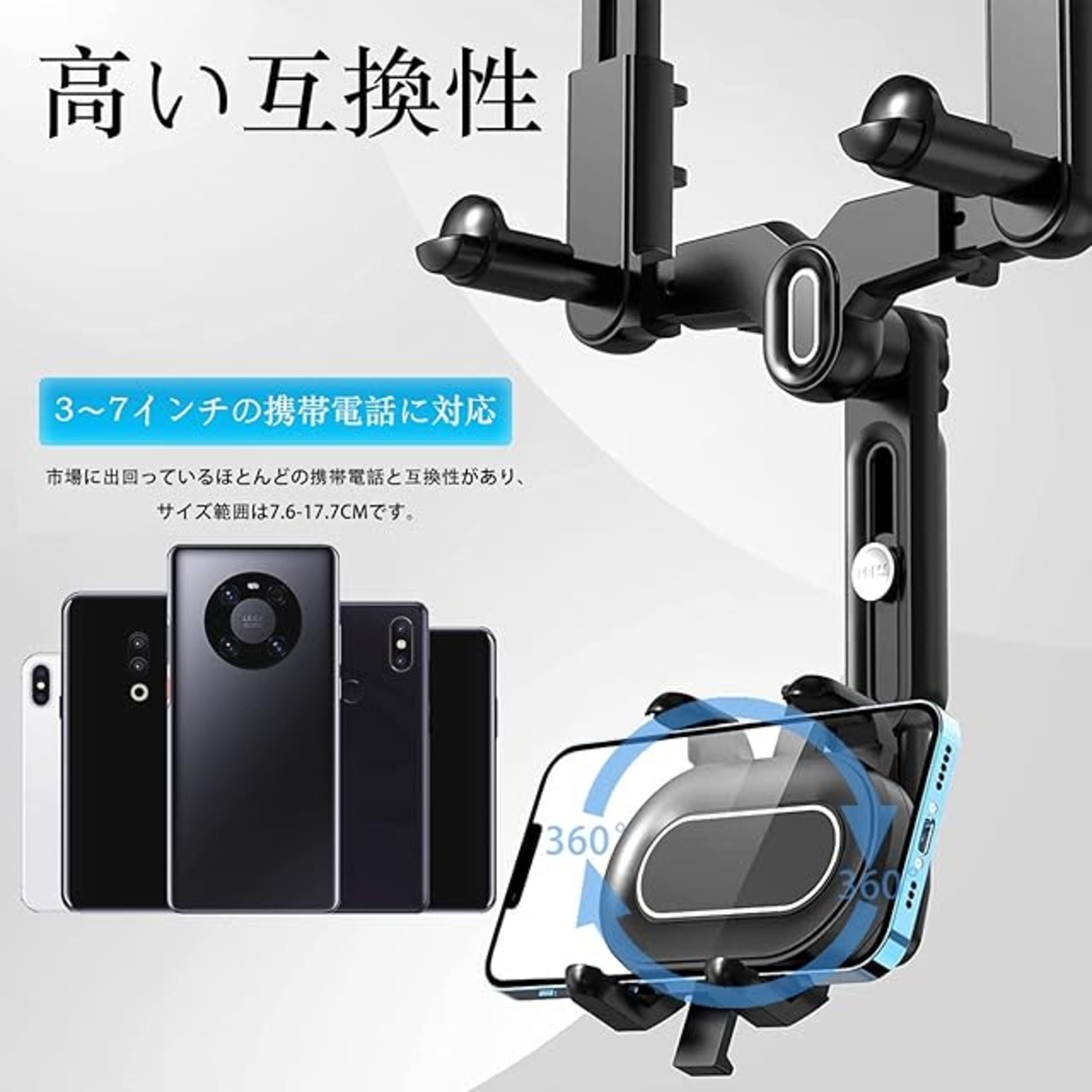 商品名:TOWYSOR スマホホルダー リアビューミラー電話ホルダー、車用携帯電話マウント、360度回転可能および格納式車載電話ホルダー、全携帯電話対応