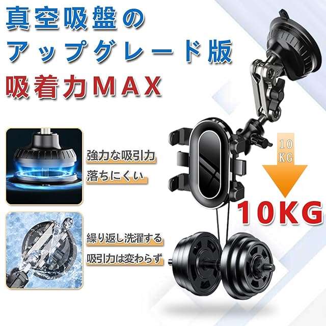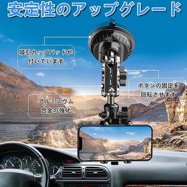 スマホホルダー 車 車載ホルダー 改良3段クリップ式+3軸機械式伸縮アーム 安定性 超自由な回転角度 360°回転 超強力真空吸盤 洗える 4.7~7インチの携帯電話に対応 車用スマホホルダー 車用品 99%車種が対応