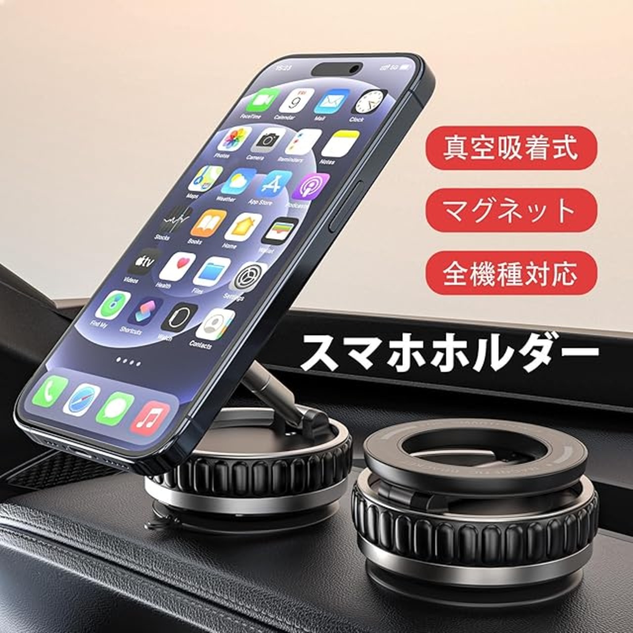 【安定感を最優先に設計された車載スマホホルダー】 KTEBOの車載スマホホルダーは、真空吸着×強力マグネットのダブル固定。吸盤がダッシュボードに密着し、8kg吸着力でしっかり保持します。段差やカーブの多い道、振動の大きい車両でもブレにくく、スマホホルダー 車/車 スマホホルダー/車載ホルダーとしてナビ・音楽・通話を安定サポート。カー用品として毎日のドライブを快適にします。 【MagSafe対応&非対応どちらも強力固定|全機種対応】 マグセーフ対応(magsafe 車)のスマホはそのまま吸着、非対応端末は付属のマグネットリングで強力固定。iPhone/Android 全機種対応なので機種変更後も使い続けられます。スマホスタンド 車/携帯ホルダー 車/スマートフォンホルダーとして家族で共有しやすく、車 スマホスタンドや携帯スタンド 車をお探しの方にも最適。 【360°回転+上下角度調整&折りたたみで視界すっきり】 360°自由回転と上下チルトで見やすい角度に細かく調整可能。運転姿勢に合わせやすく、ナビ表示がクリア。使用しない時は折りたたみできて省スペース、車内 便利グッズ/カー用品 便利グッズ 車内としてもスマートに収まります。スマホホルダー 真空吸着の安定感とマグネット スマホスタンドの手軽さを両立。 【鏡面シート付属で“粗面/凹凸面”にも強い】 ダッシュボードの素材や表面状態が気になる場合は、付属の鏡面シートで密着面を最適化。真空吸着式スマホホルダーとしてダッシュボード/フロントガラス/卓上に幅広く設置でき、スマホホルダー車/車載スマホホルダーの“ここに付けたい”を叶えます。 【軽量約88g・簡単取付・強力固定・耐久性】 本体は軽量約88gで持ち替えや移設がラク。工具不要の取付簡単、何度でも位置調整しやすいのが魅力。車 スマホホルダー マグネット/車 スマホ ホルダー/スマホ ホルダー 車の候補として、長く使える耐久設計。**車用スマホスタンド(車 グッズ)**として、軽自動車からSUVまで幅広く対応し、ハスラー スマホホルダーをお探しの方にも。 【想定シーンと適合キーワードの一例】 通勤・長距離ドライブ・Vlog撮影のナビ固定・ハンズフリー通話・音楽操作・助手席での動画視聴など。ニーズに応じて、車スマホホルダー/スマホホルダー車/携帯ホルダー車/車 携帯スタンド/magsafe 車載ホルダー/マグセーフ スタンド/カー用品 スマホホルダーとして活躍します。 ※本製品はスタンド機能・固定ホルダーです。充電スタンド機能は搭載していません。 【主な仕様】 ・固定方式:真空吸着(吸盤)×強力マグネット ・吸着力:最大約8kg ・可動域:360°回転+上下調整 ・収納:折りたたみ ・対応端末:iPhone/Android 全機種(MagSafe対応/非対応いずれも可) ・付属品:マグネットリング×3、鏡面シート×1 ・用途:車載スマホホルダー/スマホスタンド 車/車載ホルダー/スマートフォンホルダー(ダッシュボード/卓上兼用)