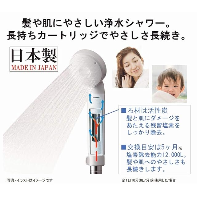 30%の節水機能※1、長寿命カートリッジ※2、日本アトピー協会推薦品、浄水/原水をカンタン切替え、簡単取り付け、医師が勧めたい浄水シャワー、※については商品の説明(ページ下部)に記載