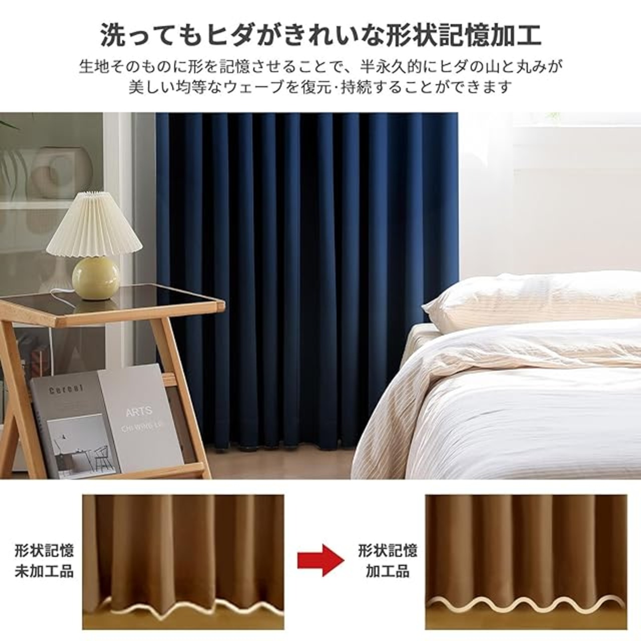 【断熱・保温・防音効果】厚手生地に加えて特殊な加工で、夏は熱の侵入を防ぎ、冬は室内の暖気を逃がさない省エネの効果も期待できる。それにより、保温性能が高いうえ、遮熱効果もあり、夏でも冬でも快適に過ごせます。さらに厚手生地で騒音を和らげ、遮音効果のないカーテンより体感約3割遮音できる。