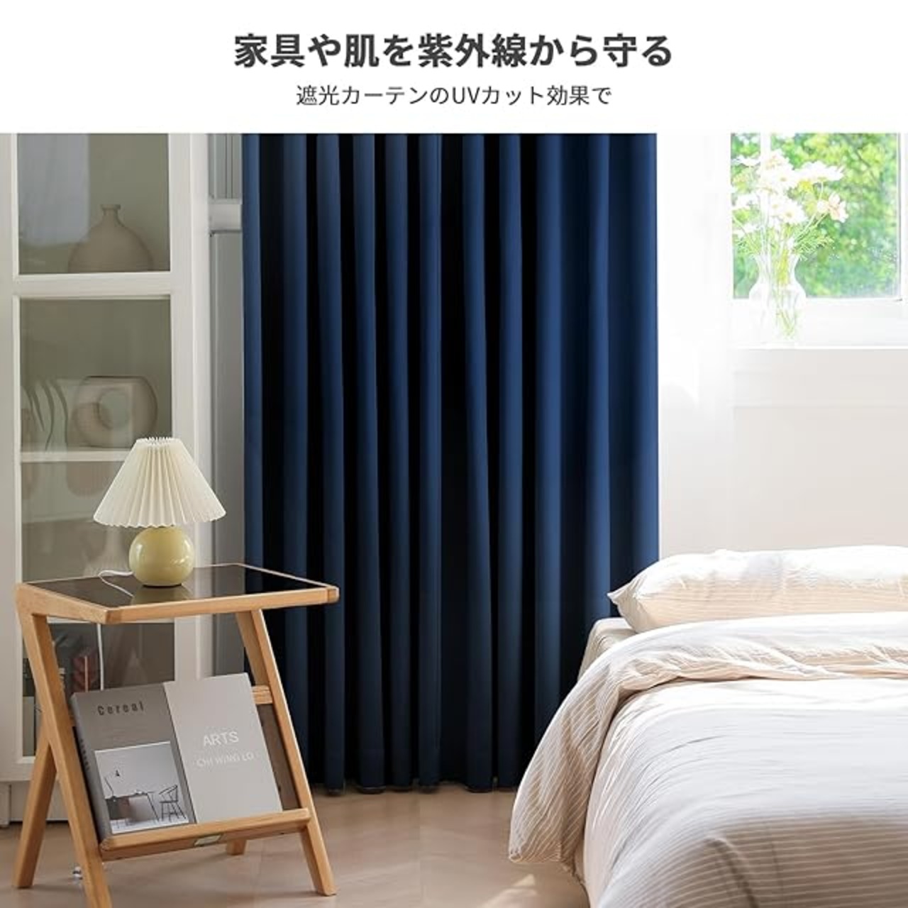 【セット内容】※ ご購入前に必ずセット内容をご確認ください。本商品では、フック付きの1級遮光カーテン2枚+見えにくい透けにくいミラーレース2枚の4枚セット、ネイビー、幅100×丈135cmのサイズとなります。