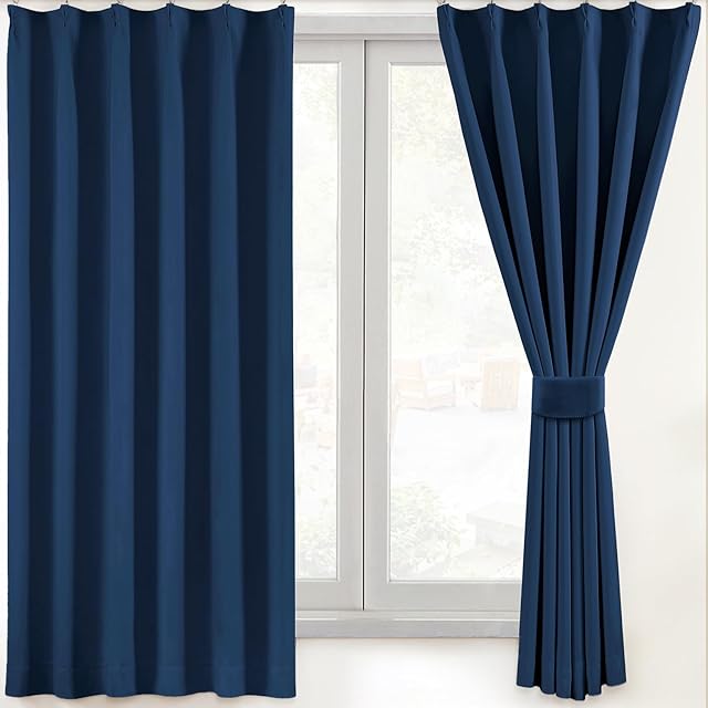 商品名:AZRA 遮光カーテン 4枚セット 【カーテン2枚+レース2枚】 1級遮光 断熱 防音 保温 防寒 省エネ おしゃれ リビング 寝室 無地 厚手無地 洗える(ネイビー,幅100×丈135cm)