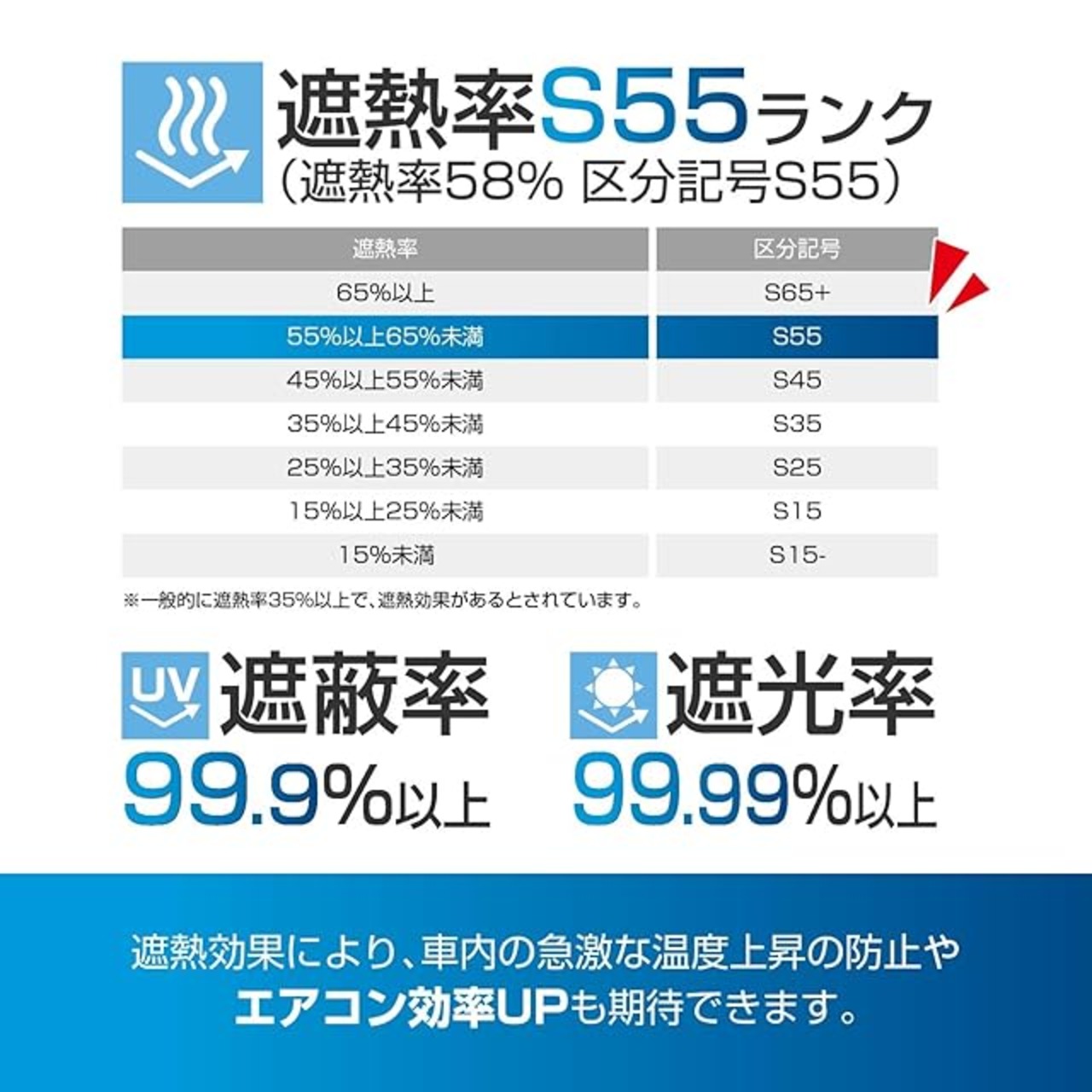 チタン銀コーティングと遮熱層によって、車内の急激な温度上昇の防止やエアコン効率UP、車内の劣化防止など様々な効果が期待できます。
