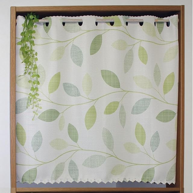 【製品・カラー・サイズ】 カフェカーテン・ グリーン [ボタニッシュ・遮光3級] ・ 幅95cm x 丈60cm [1枚入] 適応窓サイズ:幅 45 - 85cm
