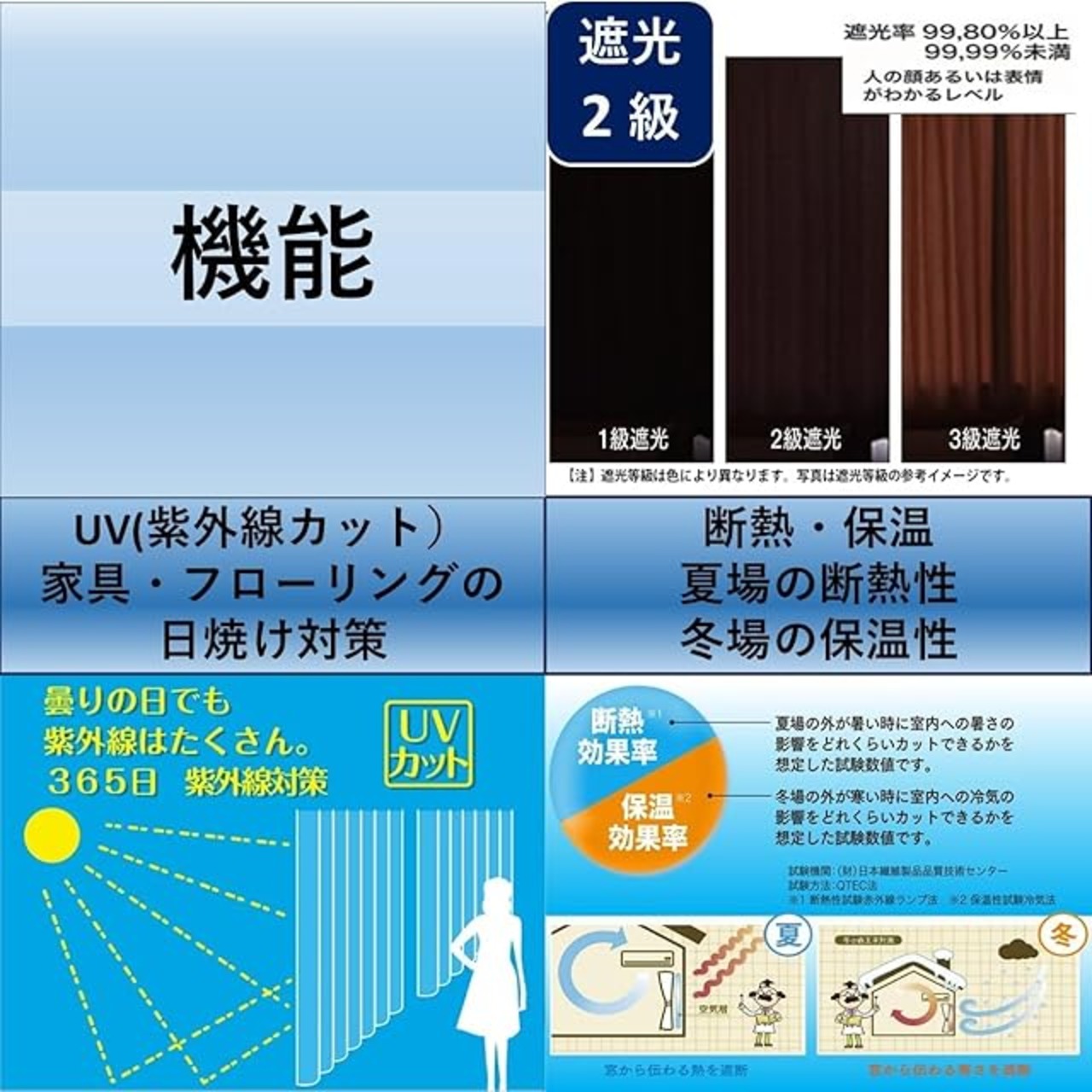【生地特徴】 3級遮光生地を使用。洗濯可能。洗濯ネットに入れて弱水流で洗ってください。乾燥機、アイロン等の高温により縮む事がございますのでご注意ください。