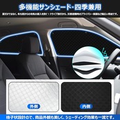 【断熱・遮光・UVカット】車内の温度上昇を和らげる便利な日除けアイテムで、車中泊での目隠しにも活躍する「車用サンシェード」です。特殊な技法で夏の日は熱線を遮断し、車内温度を抑えて、冬の日は車内の熱を外から逃がさない為、暖房効果があります。※視界確保のため運転席および助手席に装着したまま走行はできません。走行の際はお取り外しください。