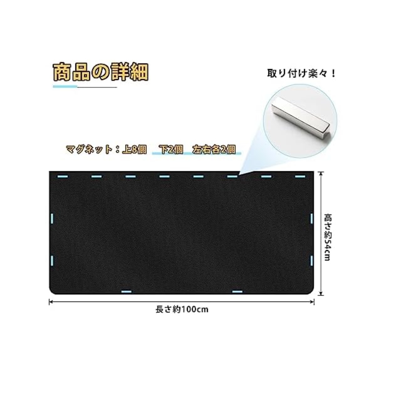 商品名:ZATOOTO 車 カーテン マグネット式 車中泊 99.9%遮光 幅100cm×縦54cm 日除け サイドカーテン 車用品 取り付け簡単 UVカット ワンボックス 軽自動車 災害対策 プライバシー保護 紫外線対策 2枚セット ブラックCT108-BK