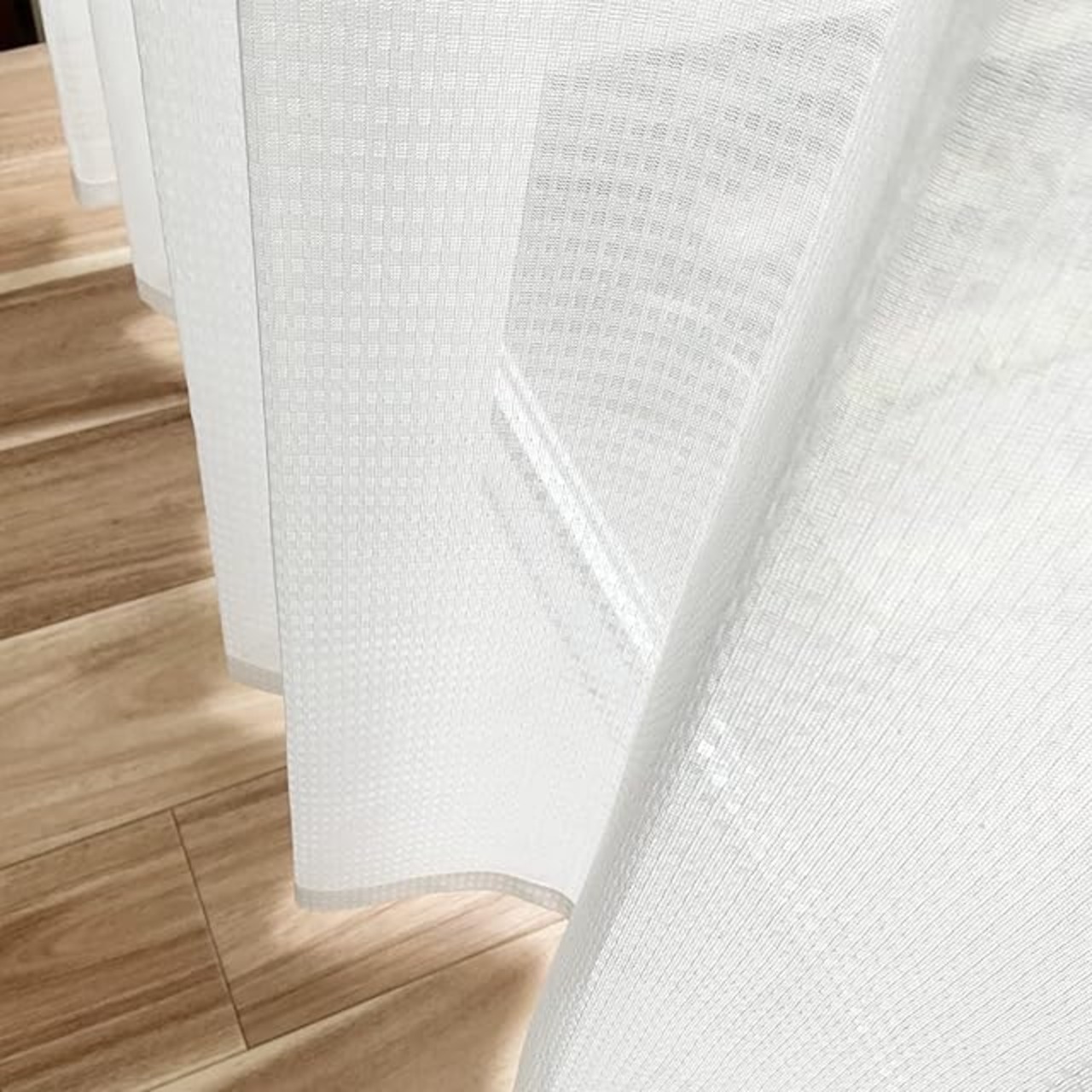 太陽光の反射効果で、日中外から部屋の中が見えにくいレースカーテンです。(曇りの日や夜は高い効果が期待できません)<br>裾部分の折り返しが短いのでシンプルです。<br>生地は細かな格子柄ですので幅広いシーンにマッチします。<br><br><br><br>※お使いのディスプレイ環境により、色の見え方に違いが生じる場合があります。慎重に色調整をしておりますが微妙な色合いは違って見える場合があります。