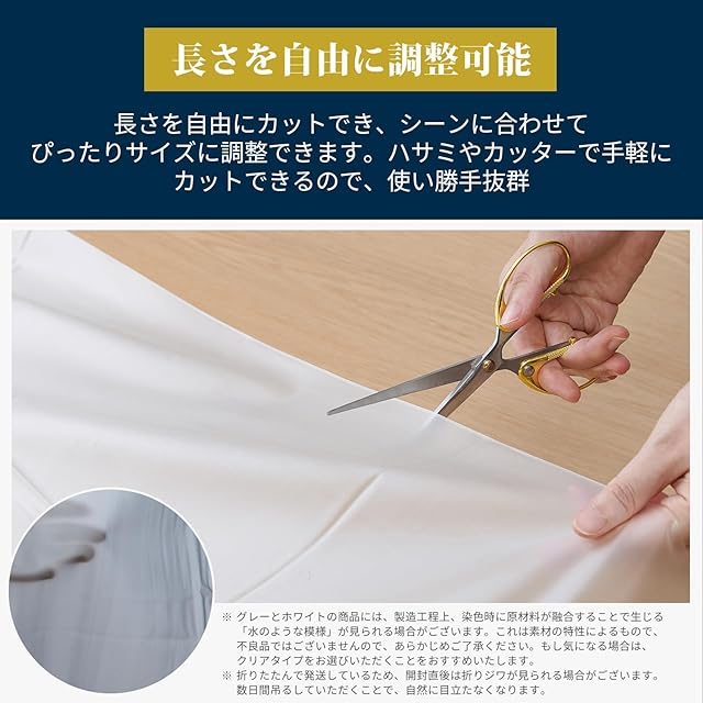 【商品仕様】※組成:本体/塩化ビニル樹脂、Sカン/ポリアセタール。Sカンフック付きで届いたらすぐ使えます!さらに、ハサミやカッターでお好きな長さにカット可能なので、窓のサイズに合わせて自由に調整できます。