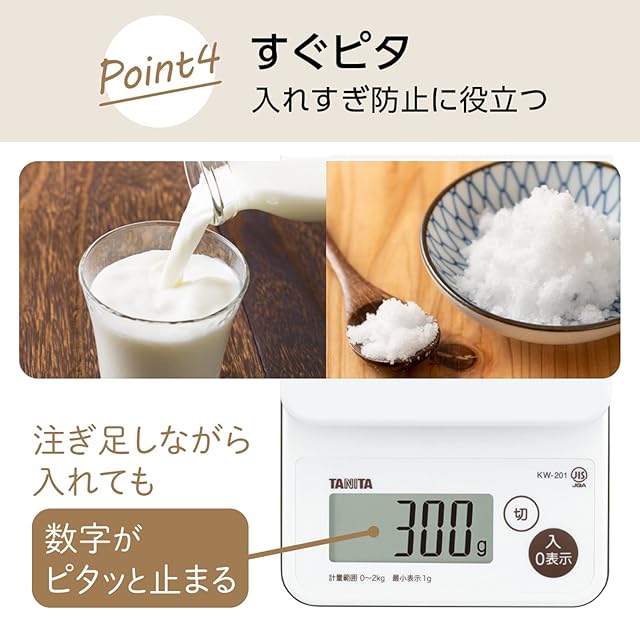 タニタ(Tanita) クッキングスケール はかり キッチン 料理 2kg 1g単位 防水 洗える 丸洗い 最短1秒ではかれる ホワイト KW-201-WH