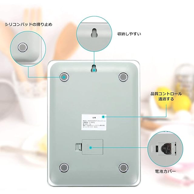 商品名:RAWAHOME デジタルスケール キッチン電子スケール 高精度センサー 1g~5kg 多機能 正確 シンプルなデザイン