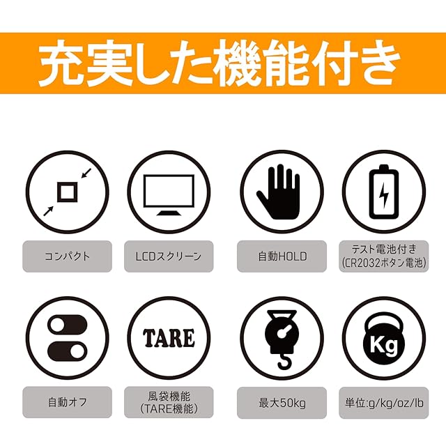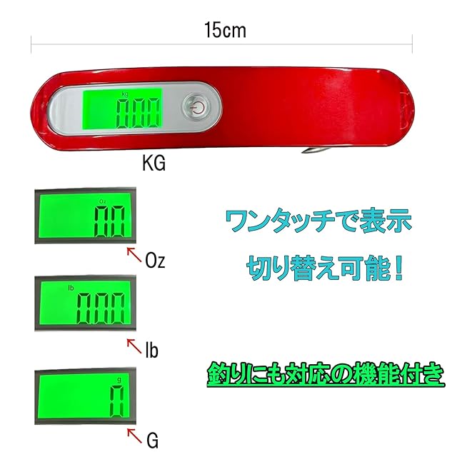 UNICITEのデジタルスケールは、日常使いからアウトドア、釣りまで幅広く活用できる多目的計量器です。<br> 最大50kgまでの計測が可能で、シングルフックタイプを採用しているため、荷物の重さはもちろん、釣果の計測にも最適です。<br> LEDライト付きで暗い場所でも数値が見やすく、4つの単位切替機能を搭載し、ボタン一つで簡単に操作できます。<br> 軽量でスリムなデザインは持ち運びに便利で、アウトドアやトラベル時の荷物チェックにも重宝します。<br> 電池が付属しているため、購入後すぐにご使用いただけます。<br> 日本企業が開発した信頼性の高い製品で、万が一の際のサポート体制も整っています。<br> シンプルで使いやすい機能性と、スタイリッシュなデザインを兼ね備えた実用的なデジタルスケールです。
